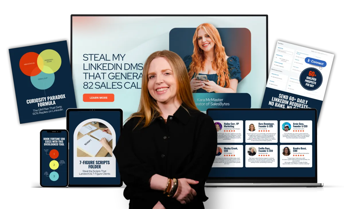 Kara R. was burnt out and totally overwhelmed and struggling to scale her consultancy business. 6 weeks after implementing the SalesBytes systems, she closed a $50K deal from a cold audience. ‼️2024 Edit: She's since closed over $400k in new revenue from these systems.